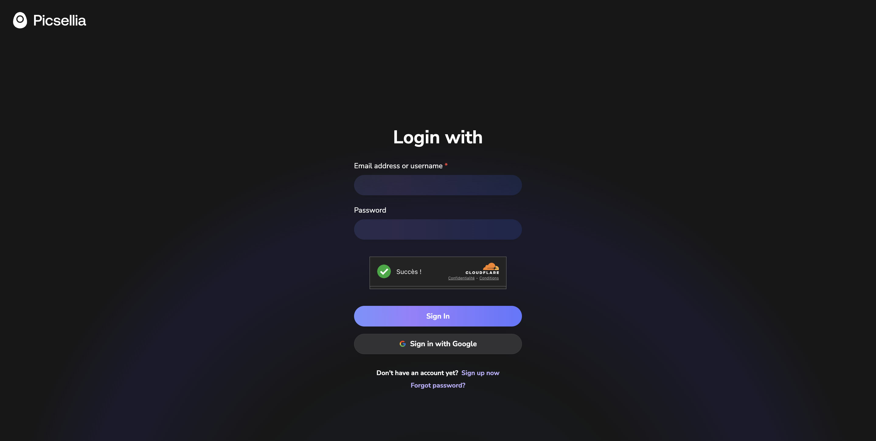 Upon arriving at the login page, you'll be prompted to enter your username and password to access Picsellia. If needed, you can also reset your password.