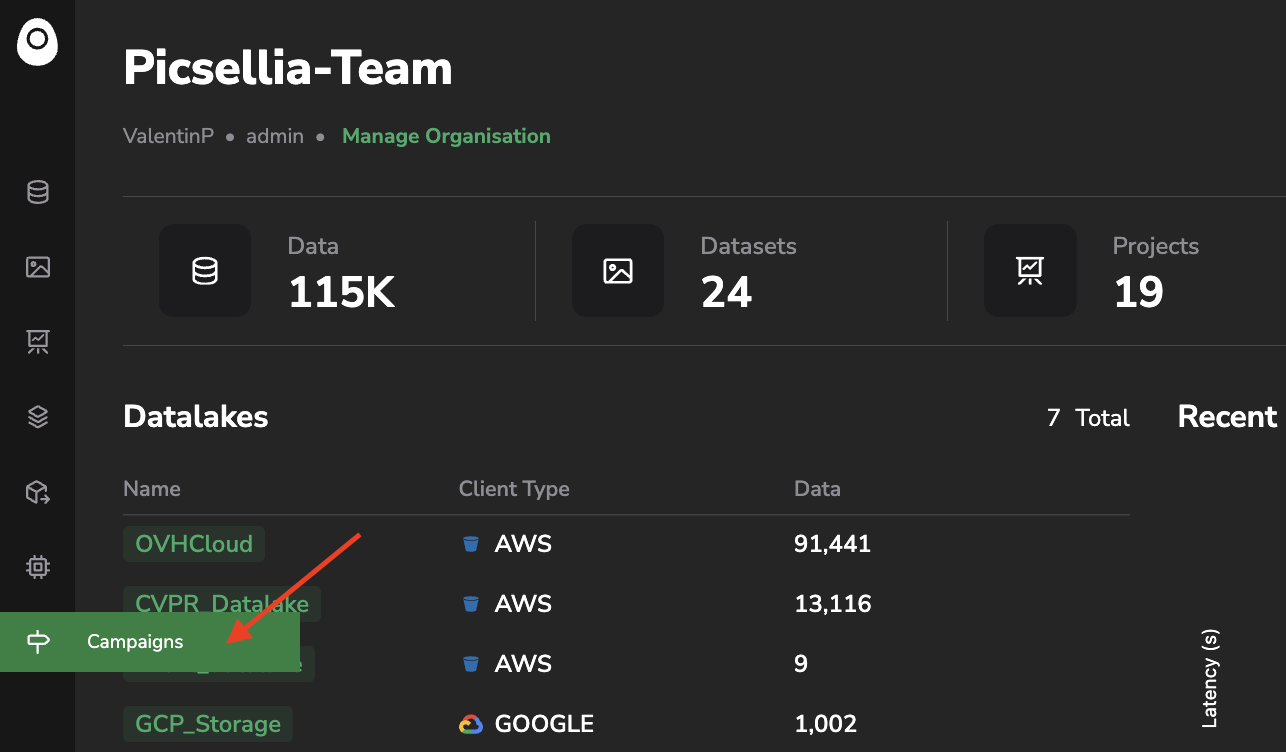 This page lists all the Campaigns related to your Organization, their status and the ongoing progress. The extended documentation related to the Annotation Campaign on DatasetVersion
