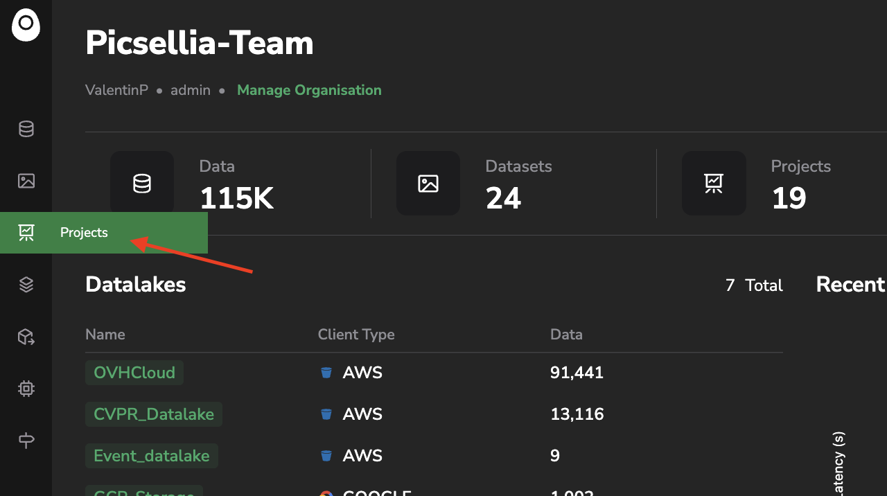 feature available on the left sidebar, you'll retrieve all your different Data Science projects.