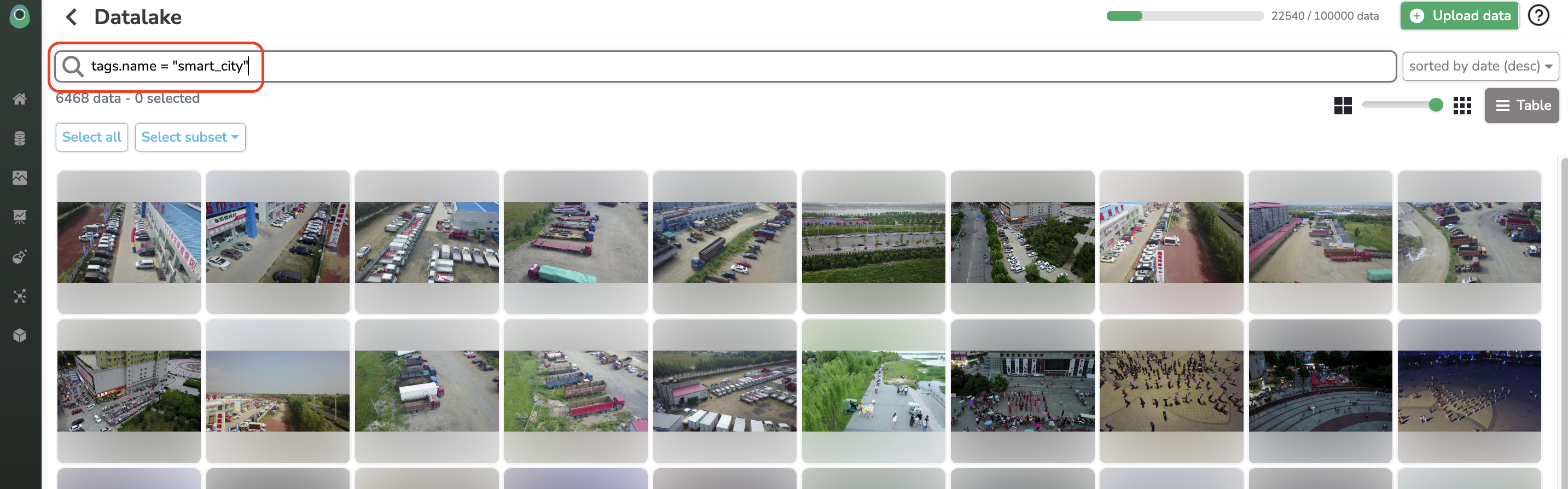 A modal opens, allowing you to select the Data to be uploaded in your Datalake. We strongly advise you to create aDataTag and assign it to the images you are about to upload, it will be beneficial to organize your Datalake.