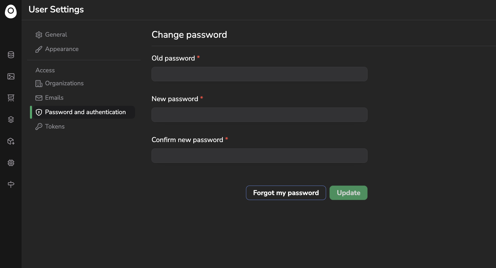 For obvious security purposes, you can change your Picsellia password at any time from the Change Password tab:
