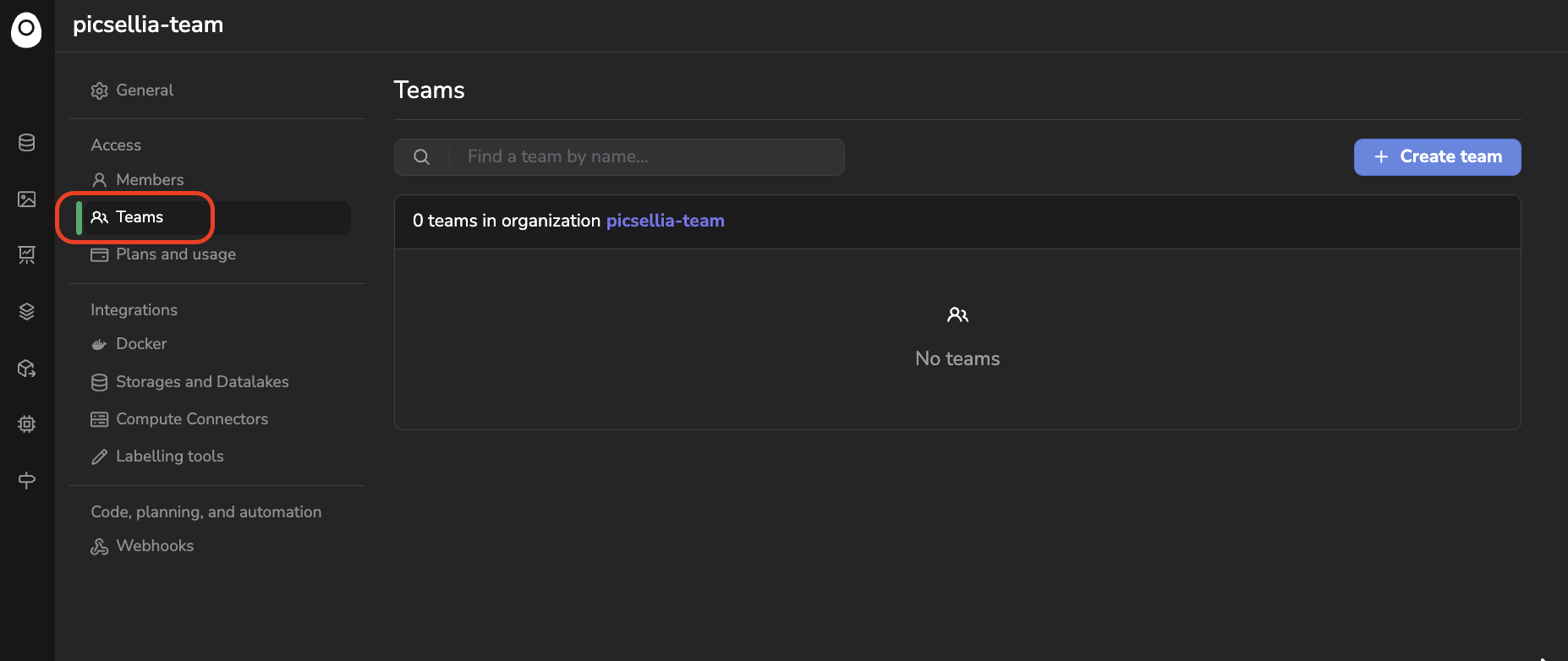 - A Member with an Reader Organization Right is not able to create any of these Picsellia resources. The Reader Organization Right doesn't provides the access to the Organization Settings tab.
