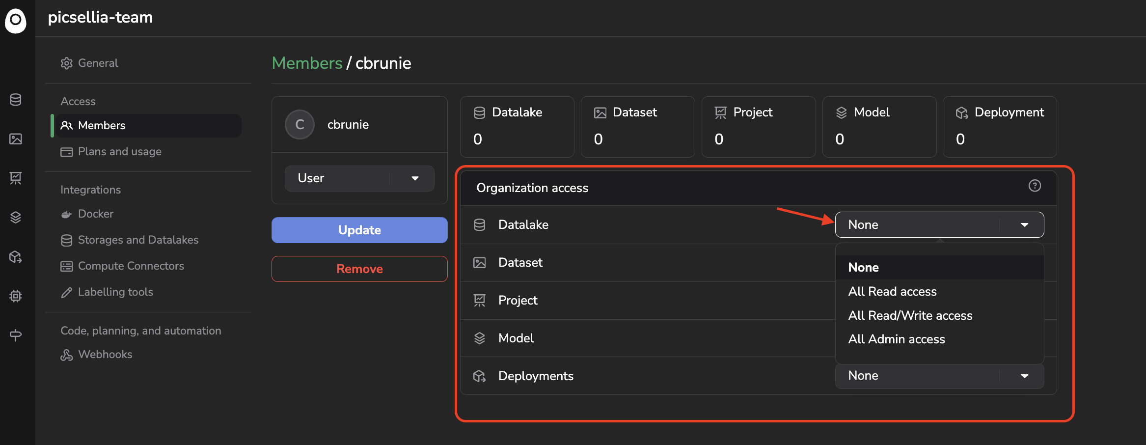 You are now able to provide to each Member of your Organization, the exact level of permissions and accesses required on the different resource types and particular objects of your Picsellia Organization.