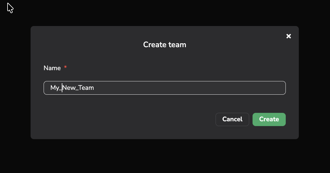 You can then click on + Create Team and prompt your Team name, and select the Member that will be part of this new Team by prompting their usernames.